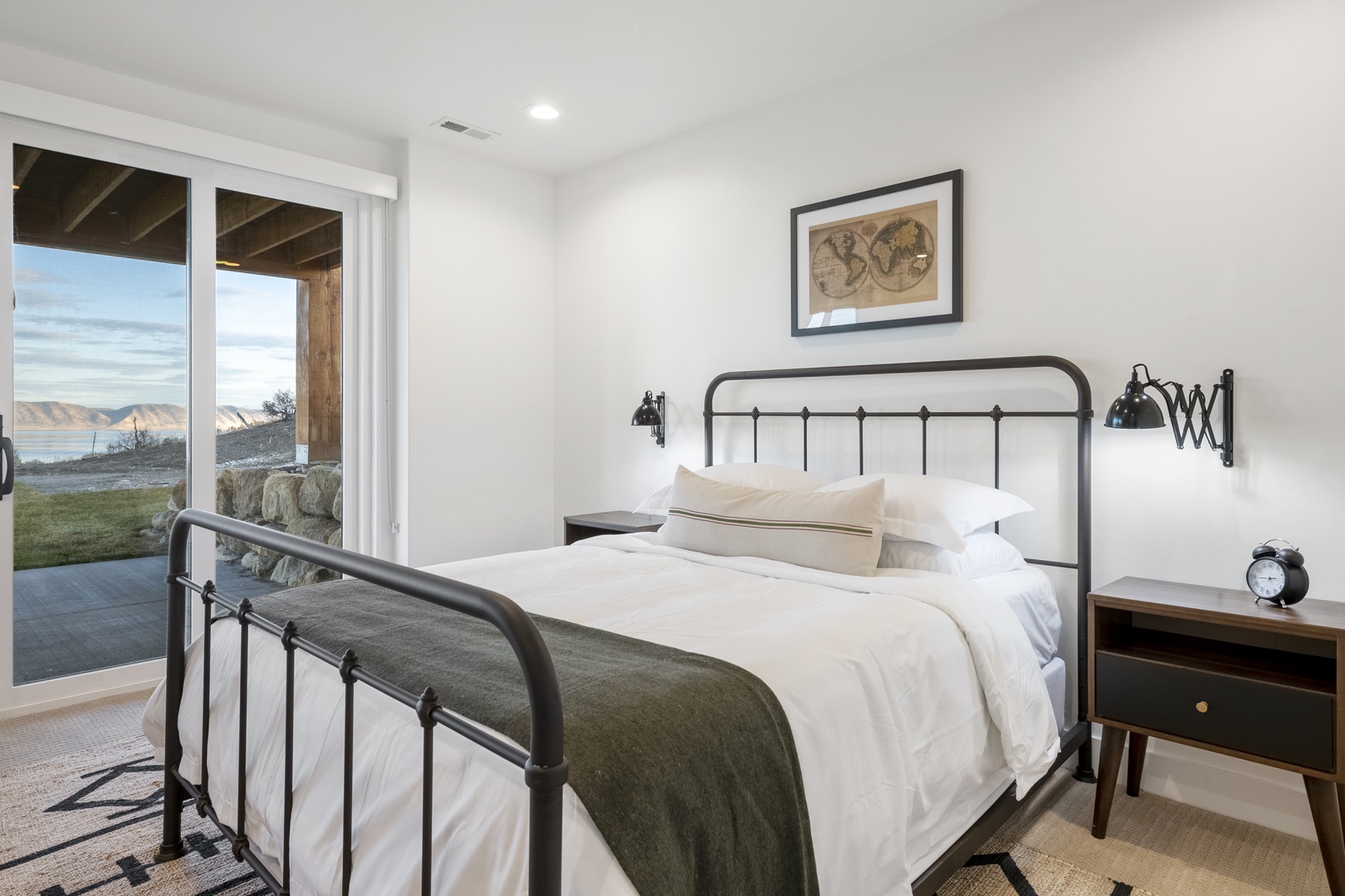...Black Timber Lodge-Bedroom with Private entrance to hot tub and patio.