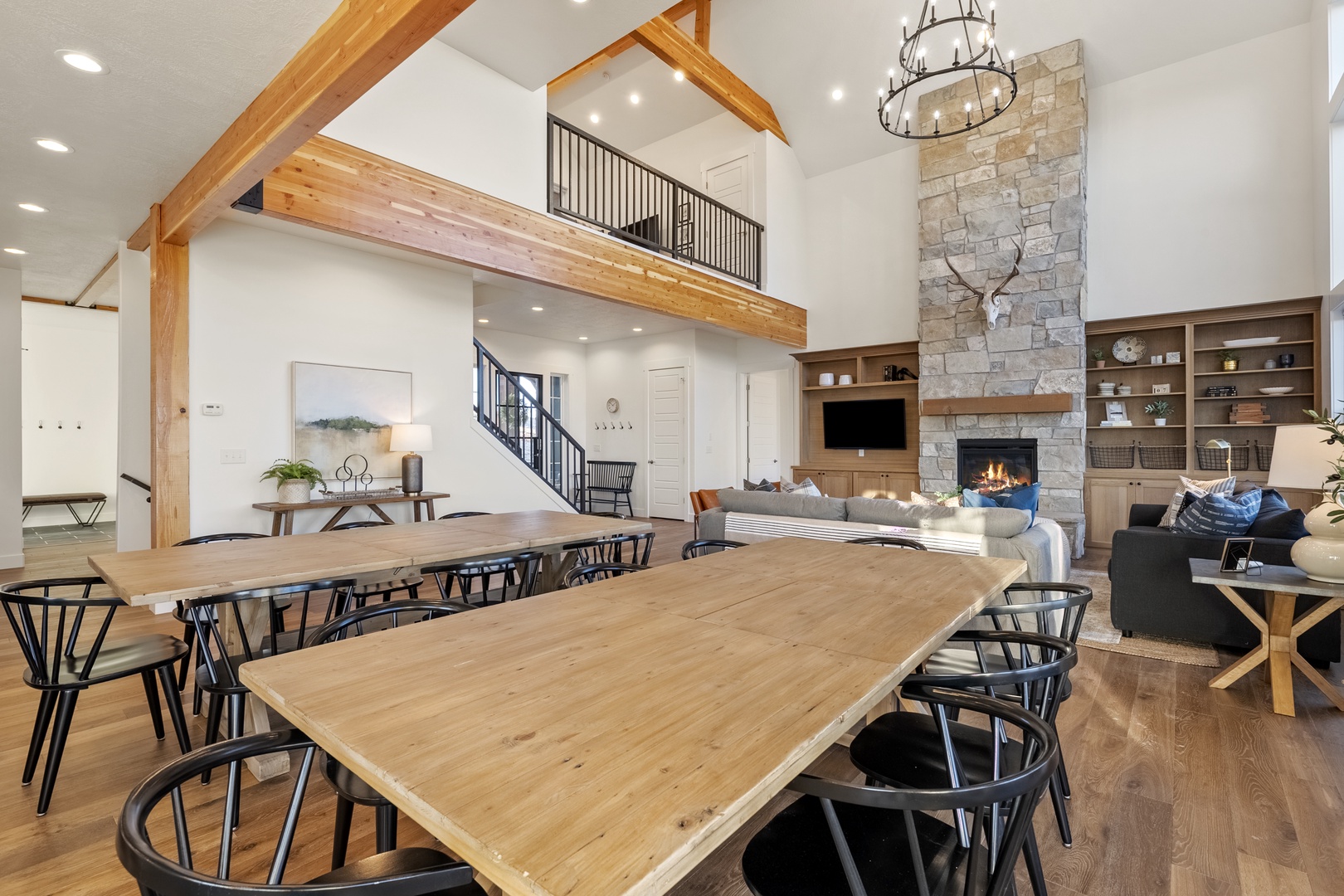 ...Black Timber Lodge-View of Living and Dining Area from Loft