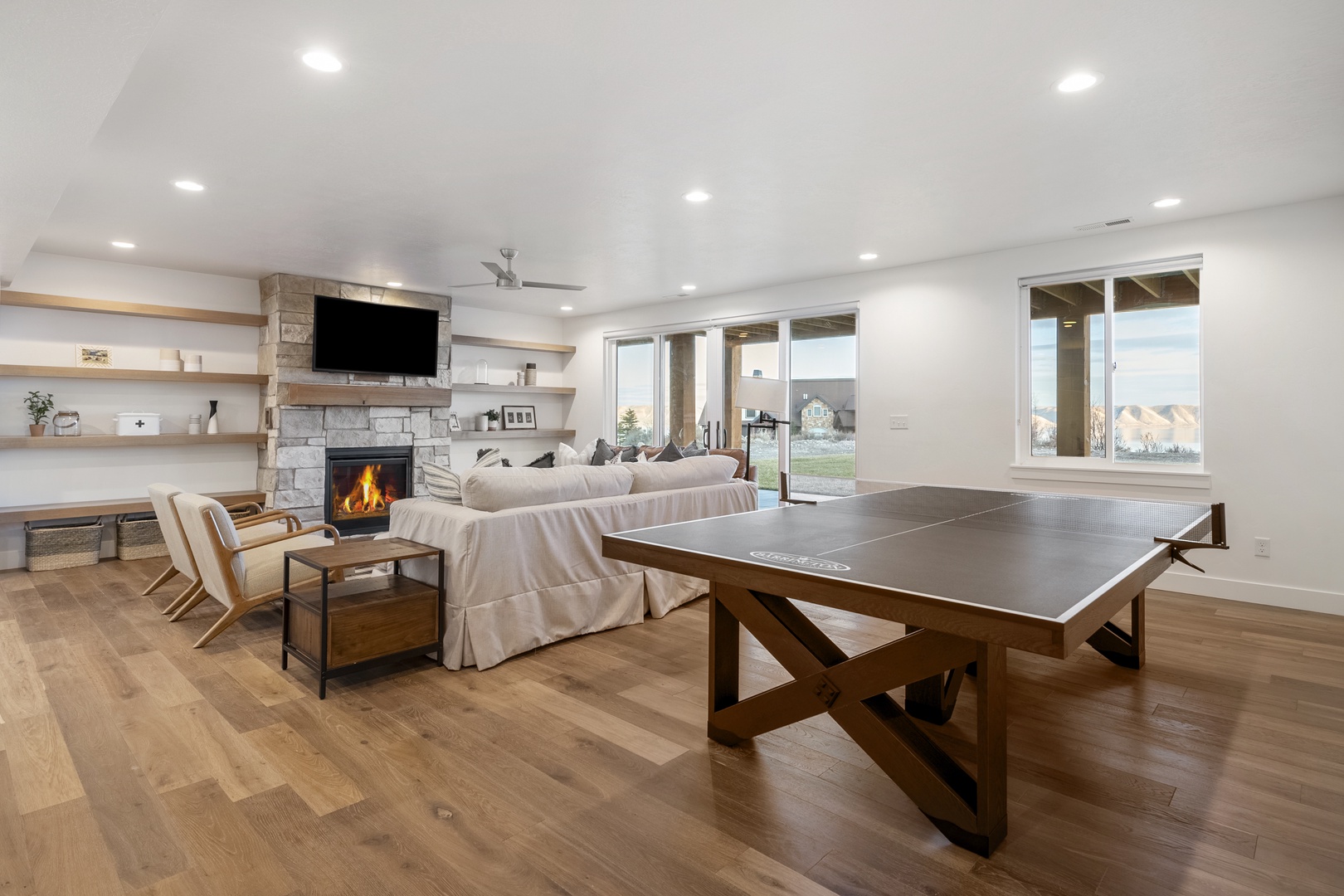 ...Black Timber Lodge-Basement Family Room and Ping Pong Table